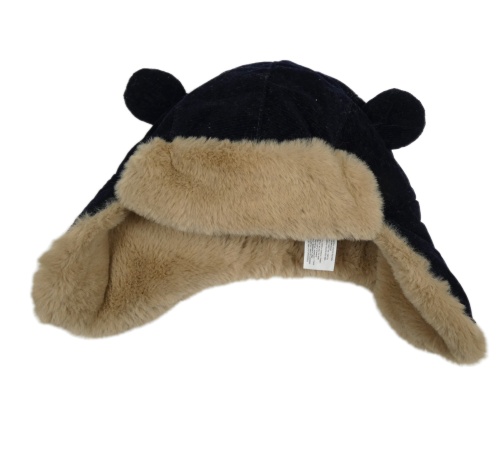 Tmavomodrá manšestrová zateplená beranice s kožešinou a oušky PRIMARK