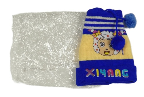 Nové - Safírovo-žlutá čepice s ovcí a pruhy