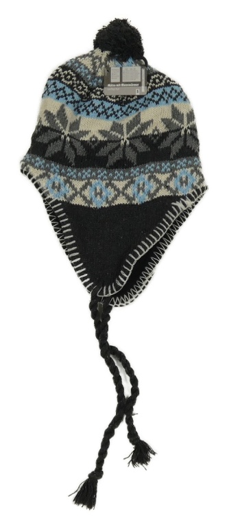 Nové - Antracitovo-bílo-světlemodrá čepice s norským vzorem a bambulí