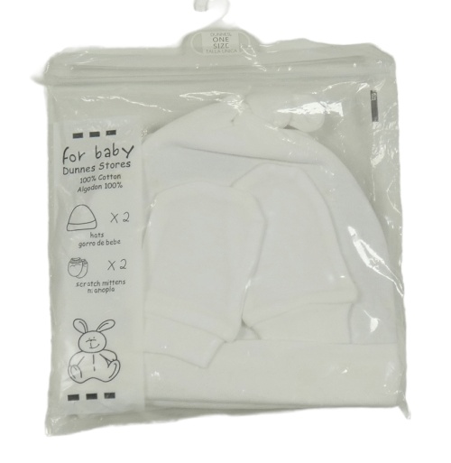 Nové - 4set - 2x smetanová bavlněná čepice s oušky + 2x rukavičky Dunnes