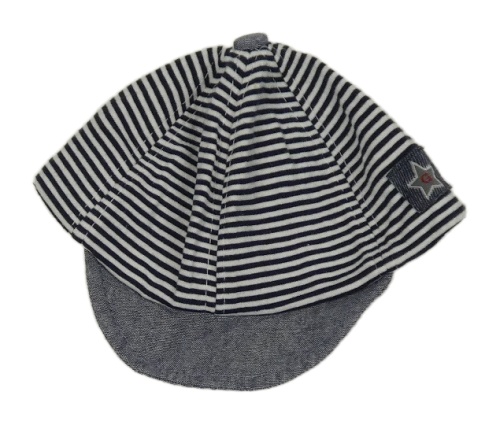 Tmavomodro-bílá pruhovaná kšiltovka s nášivkou
