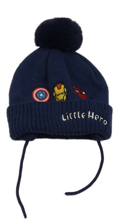 Tmavomodrá pletená podšitá čepice se Superhrdiny a bambulí Matalan