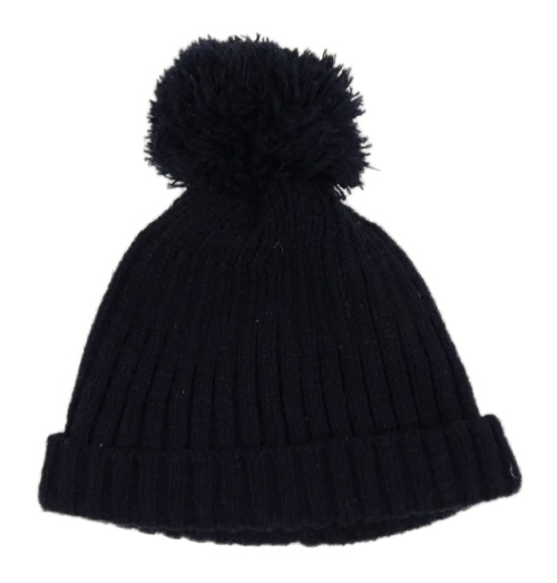 Tmavomodrá pletená žebrovaná čepice s bambulí George