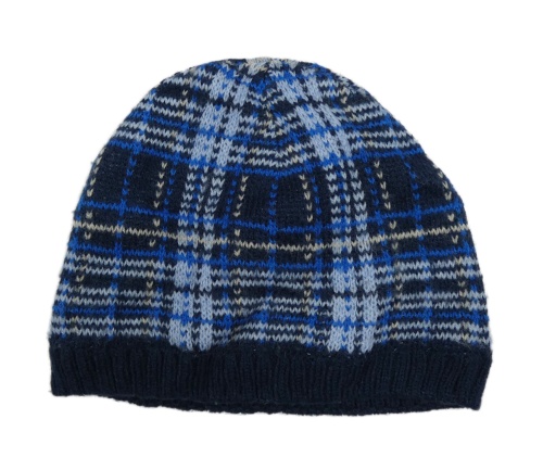 Tmavomodro-modrá kostkovaná pletená podšitá čepice