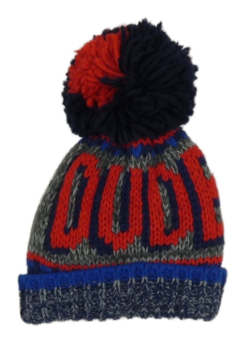 Šedo-modro-červená pletená podšitá čepice s bambulí Matalan