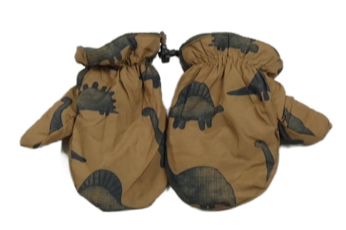 Hnědé šusťákové zateplené palcové rukavice s dinosaury