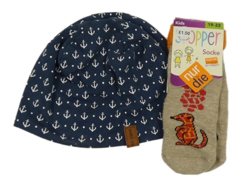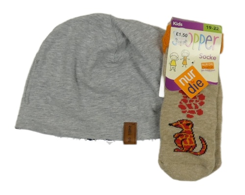 Nové - 2set - Šedá oboustranná čepice + béžovo-červené protiskluzové ponožky se surikatou