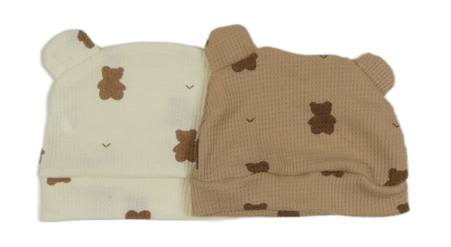 2x žebrovaná čepice s medvědy a oušky - smetanová + hnědá