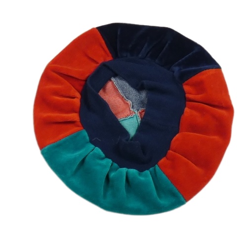 Červeno-zelený sametový baret