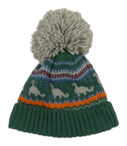 Zeleno-šedá vzorovaná pletená podšitá čepice s bambulí George