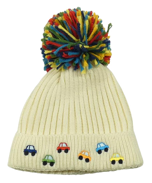 Krémová žebrovaná pletená čepcie s auty a bambulí George