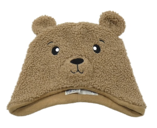Hnědá huňatá podšitá čepice s čumákem - medvěd St. Bernard