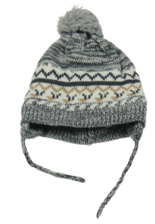 Nové - Šedo-bílo-béžová vzorovaná čepice s bambulí C&A