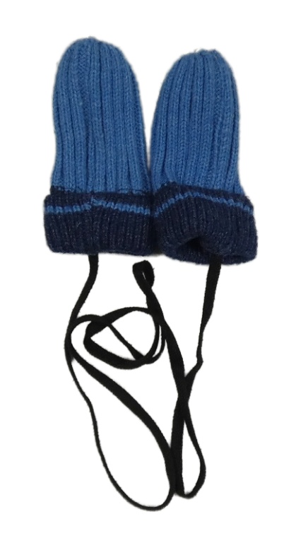 Tmavomodro-modré žebrované pletené rukavice se šňůrkou
