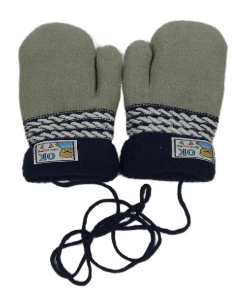 Šedo-tmavomodré pletené zateplené rukavice s nášivkou a šňůrkou
