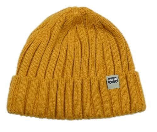 Hořčicová žebrovaná pletená čepice s autobusem Topomini