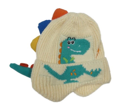Smetanová pletená čepice s dinem a barevnými ostny