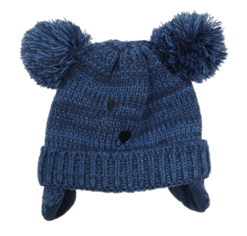 Tmavomodrá melírovaná pletená čepice s čumákem a bambulemi F&F