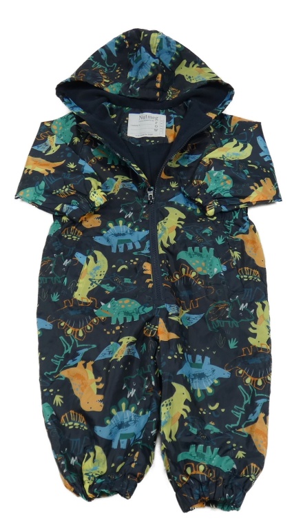 Tmavomodrá šusťáková jarní kombinéza s dinosaury a kapucí Nutmeg