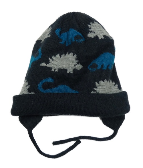 Tmavomodrá pletená čepice s dinosaury Topomini
