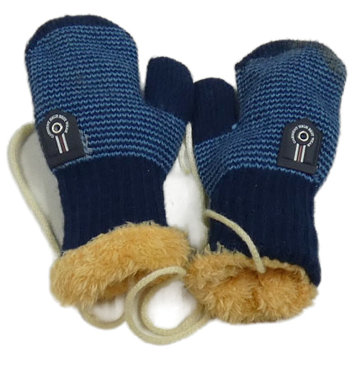 Modro-tmavomodré pruhované pletené palcové zateplené rukavice se šňůrkou