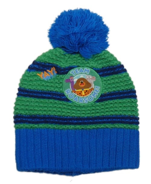 Zeleno-modrá pruhovaná pletená čepice s Hej Hafí a bambulí Tu
