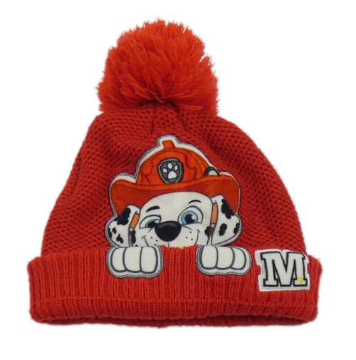 Červená pletená čepice s Marshallem a bambulí Nutmeg