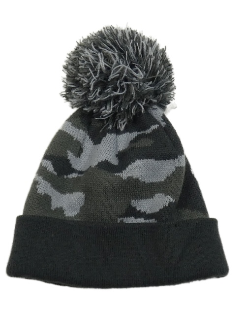 Tmavošedo-šedá army pletená čepice s bambulí George