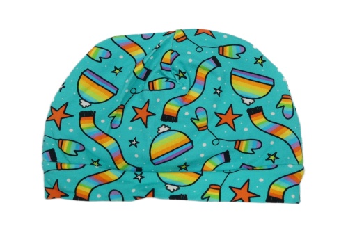 Tyrkysová čepice s tištěnými čepicemi a rukavicemi