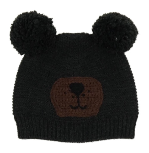 Tmavošedá melírovaná pletená čepice s bambulemi - medvídek Next