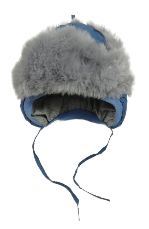 Modro-šedá šusťákovo/kožešinová zateplená čepice