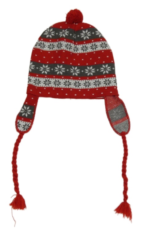 Červeno-šedo-bílá čepice s norským vzorem a bambulí