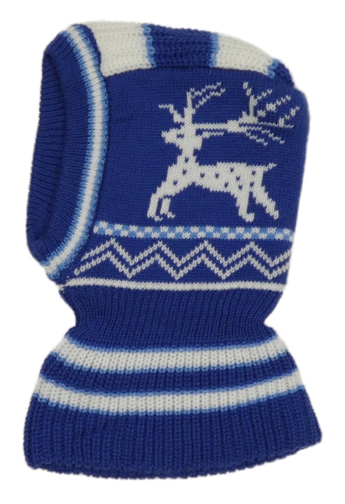 Modro-bílá pruhovaná pletená kukla s jeleny
