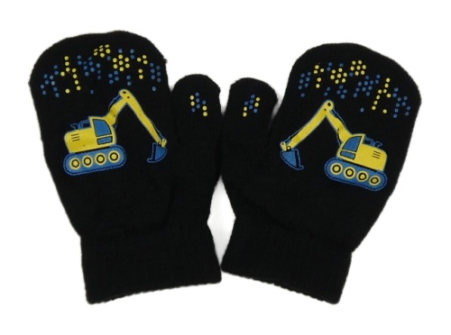 Černé palcové rukavice s buldozerem