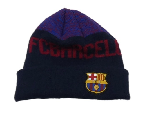 Tmavomodrá pletená čepice s nášivkou - FCB