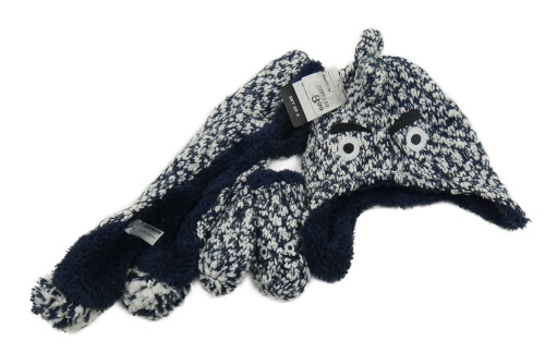 Nové - 3 set - tmavomodro-bílá vzorovaná pletená zateplená čepice + šála + rukavice