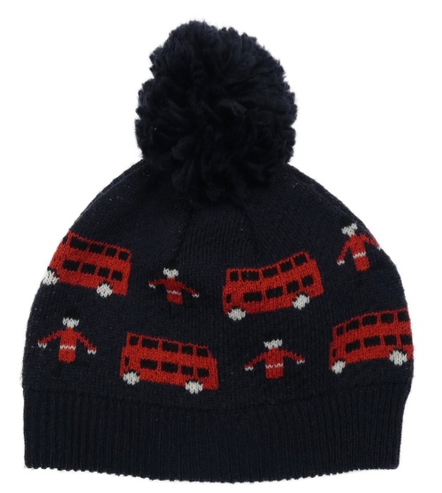 Tmavomodrá pletená čepice s doubledeckery a bambulí M&S