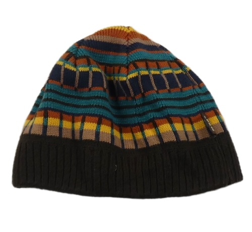 Tmavohnědo-modrozelená pletená čepice se vzorem