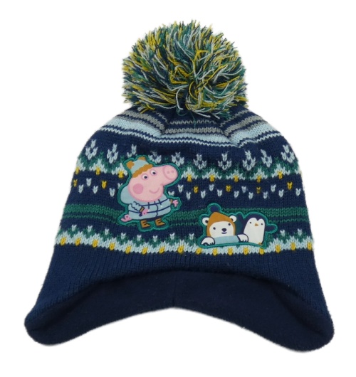 Tmavomdoro-modro-zelená vzorovaná čepice s Peppa pig a bambulí George