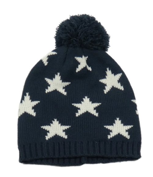 Tmavomodrá pletená čepice s hvězdami a bambulí H&M