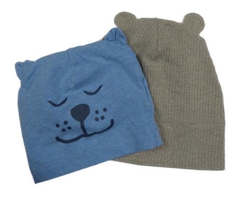 2x - Melírovaná čepice s oušky - Modrá s čumáčkem TCM, šedobéžová žebrovaná