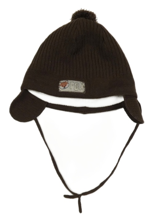 Kávová žebrovaná pletená podšitá čepice s liškou
