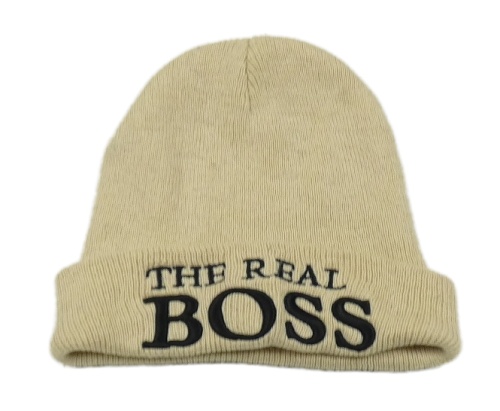 Béžová čepice s nápisem