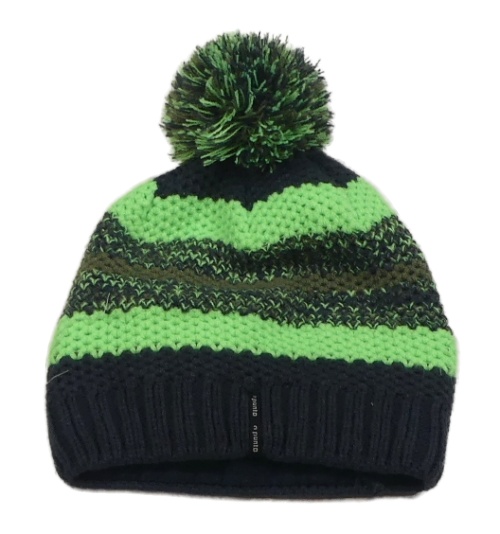 Antracitovo-neonově zelená pruhovaná čepice s bambulí