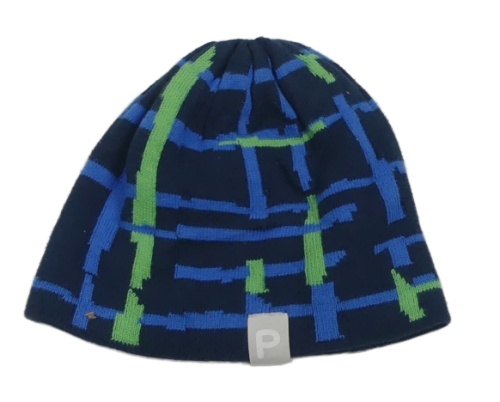 Tmavomodro-modro-zelená vzorovaná pletená čepice