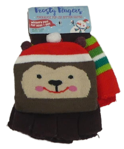 Nové - Hnědo-barevné zaklápěcí prstové rukavice s ježkem a pruhy