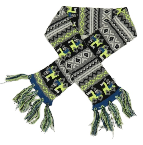 Šedo-černo-neonová vzorovaná šála s třásněmi