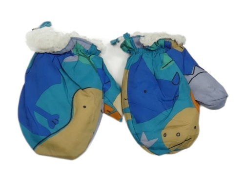 Modrozelené šusťákové palcové rukavice s dinosaury
