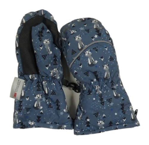 Šedomodré šusťákové palcové zimní rukavice s liškami