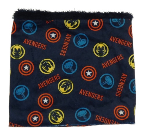 Tmavomodrý plyšový zateplený nákrčník se znaky Avengers MARVEL